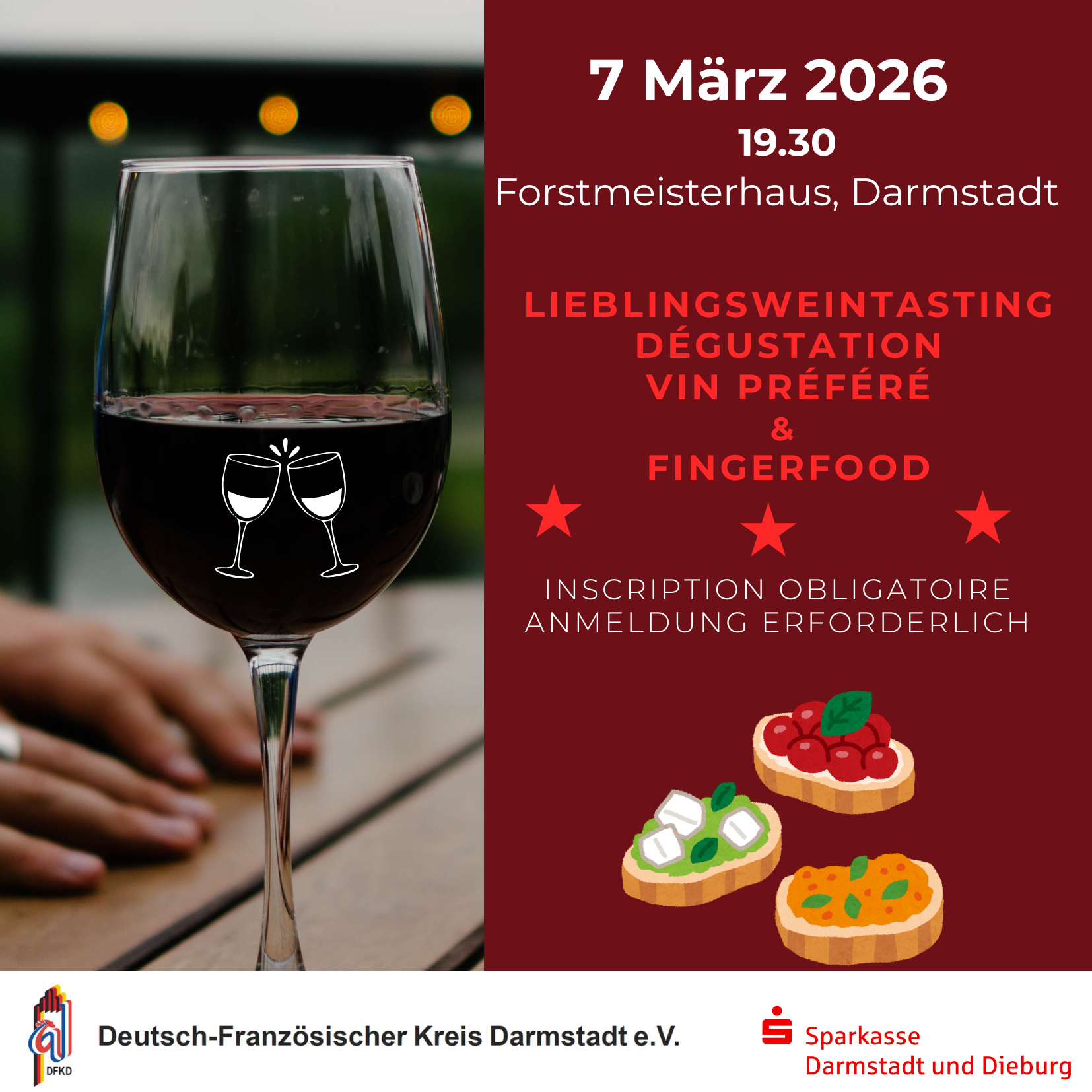 7 Mars à 19.30 : Apporter votre vin préféré : Soirée conviviale avec finger food, Forstmeisterhaus, Inscription